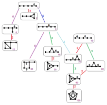 Гілки діаграми Коксетера — Динкіна позначаютьсяраціональними числами p, відповіднимидвогранним кутами 180° / p. Якщо p = 2, кут дорівнює 90° і дзеркала не впливають одне на одного, гілка може бути виключена з діаграми. Якщо гілка не позначена, домовляються, що p = 3, що відповідає куту 60°. Два паралельних дзеркала мають гілку, позначену знаком «∞». У загальному випадку, n відображень можуть бути представлені повним графом, в якому всі n(n − 1) / 2 гілок намальовані. На практиці, майже всі цікаві комбінації відображень містять деяку кількість прямих кутів, так що відповідні гілки можуть бути виключені.