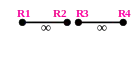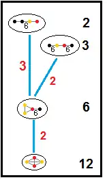 - Для розгалужених груп Dn і En наведені позначення з верхніми індексами [3a,b,c], де числа a,b і c задають кількість сегментів у кожній з трьох гілок.