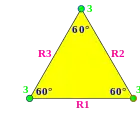 ![]() Групи Коксетера на сфері з відповідними діаграмами. Одна фундаментальна область виділена жовтим кольором. Вершини області (і гілки графу) пофарбовані відповідно до порядку відображення. |