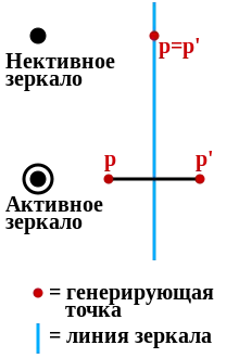 Діаграму Коксетера — Динкіна можна розглядати як графічний описфундаментальної області відображень. Дзеркалом (безліччю нерухомих точок відображення) є гіперплощина в заданому сферичному, евклідовому або гіперболічному просторі. (У двовимірному просторі дзеркалом є пряма, а в тривимірному — площина).
