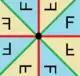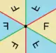 | Прямі відображення розфарбовані відповідно вузлів діаграми Коксетера. Фундаментальні області пофарбовані в альтернативні кольори. | ||||||||