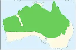 Ендемік Австралії. Поширений на значній частині території країни на північ від озера Ейр. Мешкає в евкаліптових лісах різноманітних типів.
