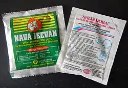 За відсутності офіцинально виготовлених ОРС регідратаційну суміш можна виготовити на місці захворювання, змішавши 6 чайних ложок цукру і одну чайну ложку солі без гірки в 1 літрі безпечної води («смак сліз»).[31] При діареї транспорт глюкози у кишечнику не страждає, тому цукроза («звичайний цукор») додається в усі ОРС задля того, щоб забезпечити безперешкодний транспорт рідини і електролітів з просвіту кишечника через його мембрану всередину організму, адже глюкоза їх тягне за собою.