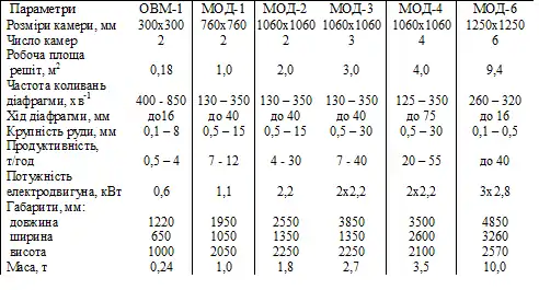 - Технічні характеристики діафрагмових відсаджувальних машин