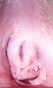 - Бахромчастий або пелюстковий (hymen caruncularis) — має численні складки, які утрудняють огляд піхви навіть при достатньому розведенні статевих губ[2].
