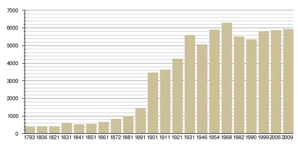 Динаміка населення (base Cassini de l'EHESS pour les nombres retenus jusqu'en 1962[4], base Insee à partir de 1968 (population sans doubles comptes puis population municipale à partir de 2006)[5] · [6] ):
