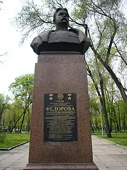 - командира партизанського з'єднання Олексія Федорова (1947, бронза, Національний художній музей України)[1];