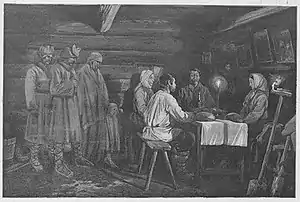 Особливо шанований обряд проводиться в суботу, напередодні 26 жовтня (8 листопада). Тоді пекли млинці, ходили на могили рідних, перший млинець із медом ділили між усіма членами родини. У цей день "діди" приходили до своїх родин на поминальні обіди, а тому промовляли до них: "Пом’яни, Боже, чесних батьків". Обряд проводили пізніше після полудня або надвечір. Із кожної страви обов’язково відкладали трошки в окремий посуд, яку потім із ложками ставили на ніч на покуті[1].