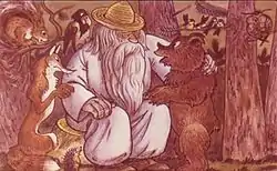 Дід Маноцівник у діафільмі «В Країні Сонячних Зайчиків» (1980 р.) виконаний хужожником-ілюстратором Юрієм Северином