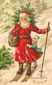 На початку XX ст. у Росії не друкували листівки із зображенням Діда Мороза. За свідченням дореволюційних авторів, малювався Санта-Клаус, неодмінними атрибутами якого були «західна ялинка» та інші символи західного Різдва. Єдиною відмінністю від католицьких поштівок було надруковане різдвяне привітання російською мовою.[18]