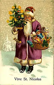 ![]() Святий Миколай — прообраз Діда Мороза. Французька листівка | |