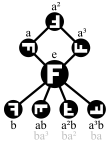 - Вони абелеві; для всіх інших значень n група Dihn не абелева.