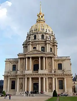 Будівництво Купольної церкви почалось в 1677, її було збудовано під керівництвом архітектора Жюля Ардуен-Мансара. Ажурний ліхтар, що увінчує Купол, здіймається на висоту 107 метрів.