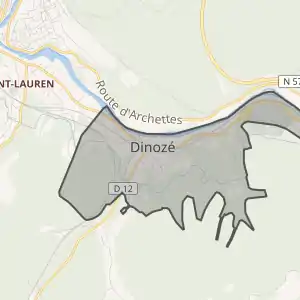 - Розташування муніципалітету Дінозе на мапі Франції та сусідні муніципалітети