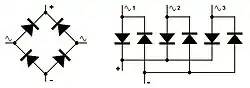 Замість діодів в схемі можуть застосовуватися вентилі будь-яких типів — наприклад селенові стовпи, принцип роботи схеми від цього не зміниться.