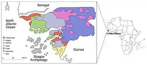 Поширення мов діола (на карті — Felupe-Djola) в Гвінеї-Бісау.
