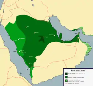 До часу смерті Мухаммада ібн Абдул-Ваххаба в 1792 Дерійський емірат поширив свій вплив і на Східну Аравію. На захоплених територіях ваххабіти громили різні святині, які шанувалися населенням, у тому числі і шиїтські. До цього періоду відноситься і протистояння дірійцев з мекканськими шеріфами в Західній Аравії[1].
