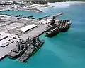 Військові кораблі USS Saratoga (CV-60), USS Scott (DDG-995) та USS Monongahela (AO-178) в порту