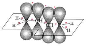 У молекулі бута-1,3-дієну немає повноцінних простих і подвійних зв'язків між Карбонами, π-електронна густина розподілена по всьому карбоновому ланцюгу, що впливає на хімічні властивості речовини. Тому структурову формулу молекули часто записують так:
