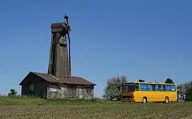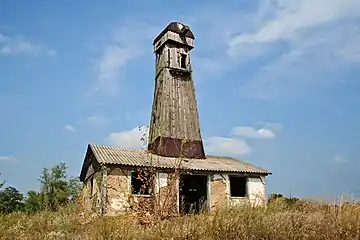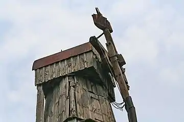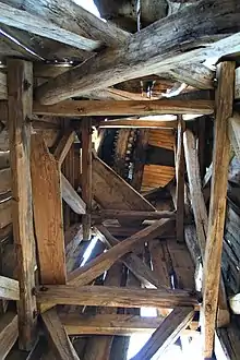 Поворотне шатро змонтоване на масивній дерев'яній рамі, утвореної з брусів прямокутного перерізу. Стійкості рамі додають бічні стяжки.