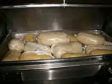 Борошно змішують з гарячою водою і добре перемішують з дерев'яним шпателем до тих пір, поки не стане, як тісто. Може бути згорнутий в кульку.