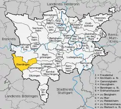 ![]() Ебердінген на карті району |