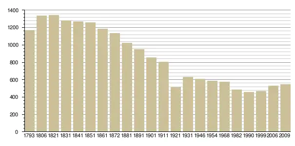 Динаміка населення (base Cassini de l'EHESS pour les nombres retenus jusque 1962[3], base Insee à partir de 1968 (population sans doubles comptes puis population municipale à partir de 2006)[4] · [5] ):