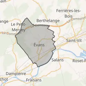 - Ehess, notice communale d’Évans sur la base de données Cassini, consultée le 30 mai 2010, наведено за французькою вікіпедією