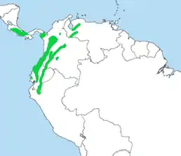 Вид поширений в Центральній та Південній Америці. Трапляється в Коста-Риці, Панамі, Колумбії, Еквадорі, на заході Венесуели, на північному заході Перу.