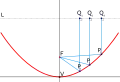- Якщо пряма, що перетинає дві прямі, утворює внутрішні односторонні кути, які менші ніж два прямі кути, то ці дві прямі, продовжені необмежено, зустрінуться з тієї сторони, де кути менші за два прямі (див. Аксіома паралельності Евкліда).