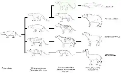 Недавнє відкриття роду пакіцетусів, найдавнішого з відомих «прото-китоподібних», підтверджує молекулярні дані. Будова хребта пакіцетуса показує, що кити не є прямими нащадками мезоніхій. Навпаки, предки китів відділилися від парнокопитних і перейшли до водного способу життя вже після того, як самі парнокопитні відділилися від спільних з мезоніхіями предків. Таким чином, прото-китоподібні були ранніми формами парнокопитних, які зберегли деякі характерні для мезоніхій ознаки (конічну форму зубів), втрачені сучасними парнокопитними. Цікаво, що найбільш ранні предки всіх копитних ссавців були, ймовірно, частково м'ясоїдними або «сміттярами».
