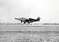 Реактивний винищувач F-89 Scorpion сідає на злітно-посадкову смугу авіабази Еглін.