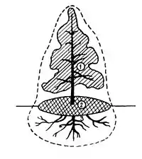 Едасфера рослини: 1 — філосфера; 2 — некроподіум; 3 — ризосфера