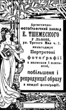 З 1869 р. Тшемеський отримав дозвіл на створення власного фотографічного ательє, яке знаходилося в будинку Бауровича на вул. Широкій 13 (тепер — вул. Коперника). Проте, перша реклама справи Тшемеського вказувала на 1868 р., як на дату заснування фірми. Саме 1868 р. він збудував фотографічний павільйон у подвір'ї свого будинку, біля входу до якого розмістив зразки своїх фотографій та назву «фотографічна шафка» (оригінал із пол. «szafka fotograficzna»).