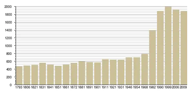Динаміка населення (base Cassini de l'EHESS pour les nombres retenus jusque 1962[3], base Insee à partir de 1968 (population sans doubles comptes puis population municipale à partir de 2006)[4] · [5] ):