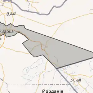 Провінція Ез-Зарка складається з трьох районів. З півночі та північного сходу Ез-Зарка межує з провінцією Ель-Мафрак, з півдня та південного заходу — з провінцією Ель-Асіма, із заходу — з провінціями Джераш та Ель-Балка. Ез-Зарка також має міжнародний кордон із Саудівською Аравією на південному сході.