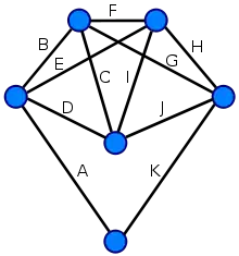 - Неорієнтований граф — Ейлера, якщо він зв'язний і може бути розбитим на реберно-неперетинні цикли.