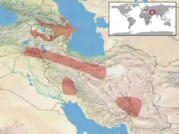 Мешкає у Болгарії, східній Туреччини, Ірані, Ірак, південно—східній Грузії, південній Вірменії, Азербайджані, передгір'я Дагестану (Росія), Лівані.