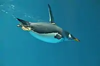 Приклад екзаптації: крила пінгвінових перетворилися на ефективні ласти для плавання. На фото пінгвін-шкіпер пливе під водою у Нагасакському акваріумі для пінгвінів.