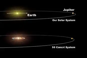 11 квітня 2005 року (підтверджено 6 листопада 2007) американські астрономи відкрили 55 Рака f — п'яту екзопланета в системі 55 Рака, що зробило її найбільшою з відомих. На початку 2011 року вона поступилася Кеплер-11 з сузір'я Лебедя (три тамтешні екзопланети були зафіксовані одразу, 26 серпня 2010 року, ще три було підтверджено до січня наступного року)[38]. В 2013 році, рекорд Кеплер-11 повторила Ґлізе 667, а в подальшому, цей показник перевершили вісім екзопланет на орбітах зірки Кеплер-90[39] та сім екзопланет навколо зірки HD 10180 (остання має також дві не підтверджені).