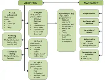 Міжнародна організація стандартизації (International Organization for Standardization) розділяє екологічні маркування та декларації на три основних типи.