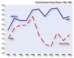 Проте через світову фінансову кризу Греція опинилася на межі банкрутства. ЄС та МВФ розробили програму фінансового порятунку Греції, включаючи план заходів жорсткої економії. Втім вони не дали бажаного результату, а сам план допомоги 2013 року експерти МВФ визнали хибним[4].