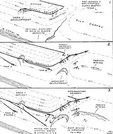 Винахід (ІІ ст. до н. е.) і широке застосування техніки гідравлічного видобутку руди, коли водна течія розкривала (відкривала) гірничу жилу. сприяв розширення гірничих робіт та добування металів у майже в промислових масштабах. Згідно з Плінієм Старшим щорічно добувалося 82 500 т заліза, 15 тис. т міді, 80 тис. т свинцю, 200 т срібла, 9 т золота. Срібло і золото спочатку переважно добувалися в Астурії, Галлеції та Лузітанії. У II ст. було відкрито золоту копальню в землях силурів (сучасний Кармартеншир, Уельс).