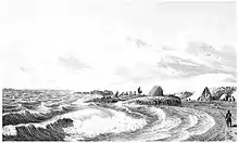 У гирлі річки Експедиціонери вирушили на схід у трьох каное і з запасом їжі на 14 днів. Проте їх просування стримували постійні бурі, часто заподіювали негаразди каное, а спроби полювати були настільки невдалими, що Франклін почав підозрювати вояжерів в навмисному саботажі з метою змусити групу повернути назад. Після проходження 500 миль (800 км) від узбережжя Франклін зробив зупинку 22 серпня 1821 року на мисі півострова Кент, який він назвав Тернагейном. Як він і боявся, стан каное, бурхливе море і вже почалася зимова міграція оленів зробили повернення до річки Коппермайн практично неможливим, а тому група вирішила вирушити до річки Худ і звідти через Безплідні землі йти до форту Ентерпрайз. Група досягла гирла річки на третій день шляху[20].