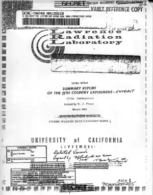 - Lawrence Radiation Laboratory, Каліфорнійський університет, Лівермор, "Summary Report of the NTH Country Experiment," W. J. Frank, ed., March 1967. (копія оригінального звіту, PDF)