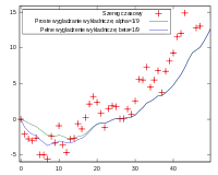 де: — згладжений ряд; — первинний ряд; — коефіцієнт згладжування, який обирається апріорі з діапазону .