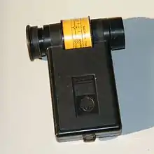 - Зі зчитуванням часу витримки або числа діафрагми здійснюється візуальним порівнянням яскравості відповідних цифр з яскравістю оптичного клина змінної щільності («Оптек»). Основний недолік — залежність чутливості ока від загальної навколишнього освітленості, що може призводити до великих похибок. Зараз практично не використовуються.