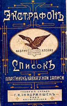 На фабриці випускалися платівки двох серій — «Артистотипія» (до 1911 року виходила під маркою «Інтернаціональ Екстра-Рекорд») — з записами головним чином оперних арій, і «Екстрафон» — з менш академічним репертуаром: танцювальна, народна музика, романси, арії з оперет. Однією з перших на студію була запрошена молода київська співачка Ковальчевська, яку за характером виконання порівнюють з Надією Плевицькою.