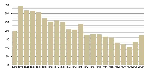 Динаміка населення (base Cassini de l'EHESS pour les nombres retenus jusque 1962[3], base Insee à partir de 1968 (population sans doubles comptes puis population municipale à partir de 2006)[4] · [5] ):
