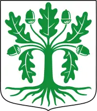 Герб отримав королівське затвердження 1949 року: у срібному полі зелений дуб з жолудями і корінням.